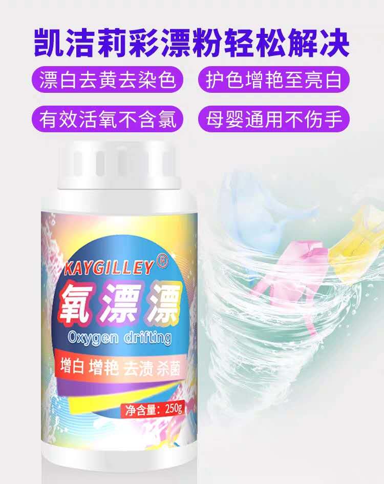 彩漂粉也叫氧漂粉是釋氧型漂白劑,溶于水后能生成過氧化氫,是氧漂的一種,它對織物的漂白較溫和,一般不會損傷織物,可令白色或有色織物漂白后色澤更亮麗。常用的含氧漂白劑主要是雙氧水和彩漂粉,有較好的漂白作用和殺菌作用。氧漂是通過在水溶液中經(jīng)過過羥離子游離出活性氧而產(chǎn)生漂白作用,在常溫下,它的漂白速度比較緩慢,為了提高洗滌速率,一般在高溫條件下進行漂白,既提高了漂白速度,也增加了織物的的去污力和白度。
